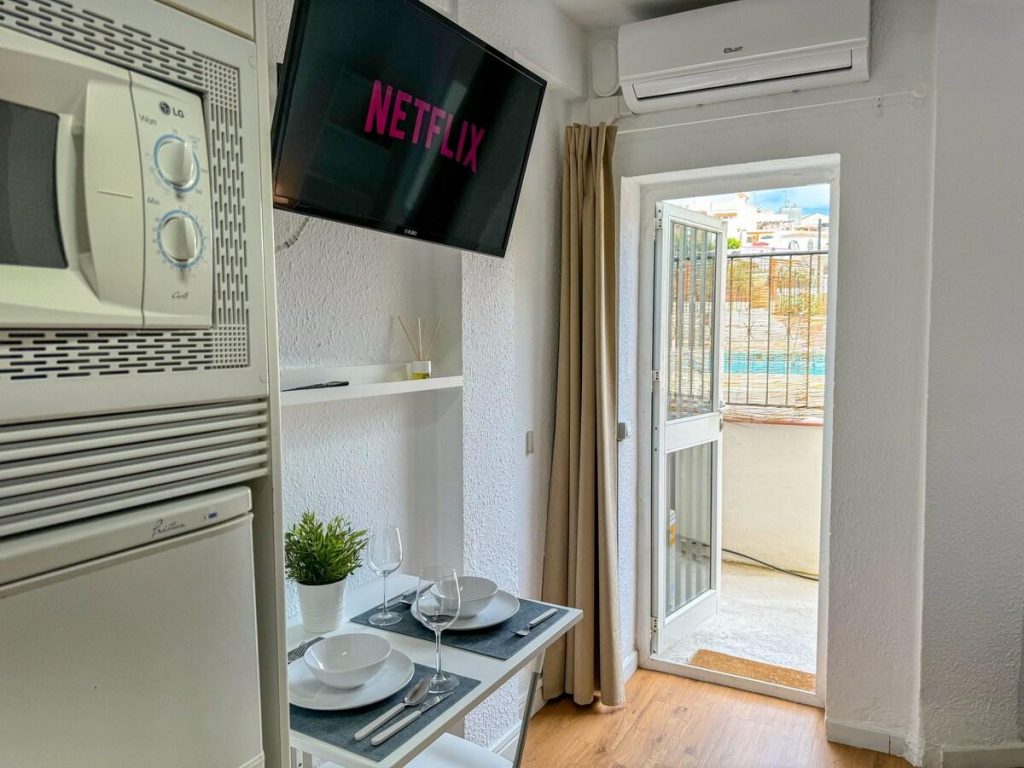 ¡Descubre este encantador estudio en Carvajal (Fuengirola), cerca de la playa! Equipado con todas las comodidades para unas vacaciones perfectas: cama de matrimonio, sofá cama, cocina completa, baño, SmartTV y Wifi.
